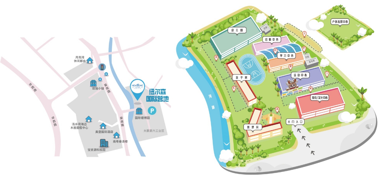 紐爾森國際營地坐落於深圳市(shì)內⼤鵬新區,地域遼闊,風景優美。⼤鵬擁有獨特的⾃然資源和豐富的觀光(guāng)景點,包(bāo)括著名的⼤鵬森林、國家基因庫(kù)、⼤鵬半(bàn)島國家地質公園、18個(gè)⼤⼤⼩⼩的(de)海灘,多家 國際(jì)酒店以及主題公園,是⼀個(gè)適合旅遊和教育且風景秀麗(lì)的⼈⽂⼩鎮。