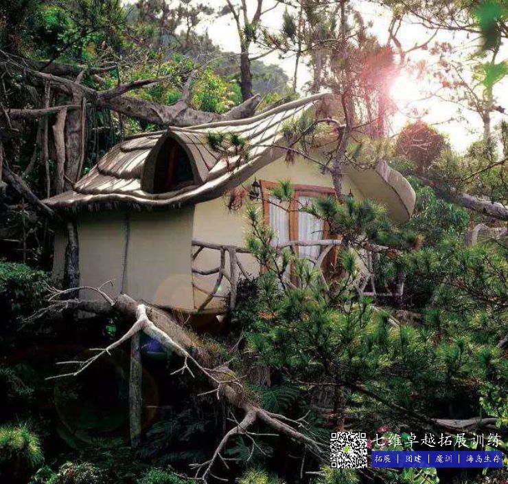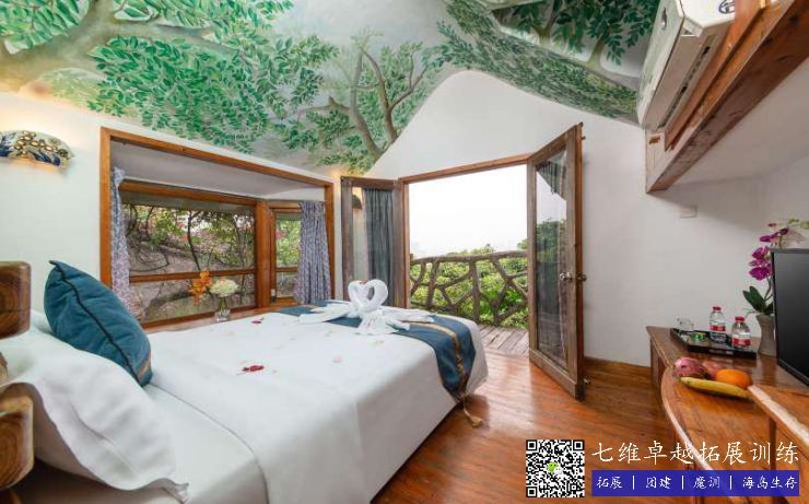 樹屋位於景區內,建於“大樹(shù)”之上,周圍襯以藤蔓植被,推開窗仿佛棲身於樹上之小鳥(niǎo),倍感(gǎn)溫馨與甜蜜;室內一張(zhāng)大床,洗手間、浴室、電視、空調等設施齊全。