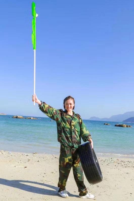 身(shēn)姿修長的她舉著旗子好像更高了