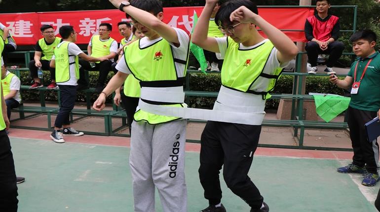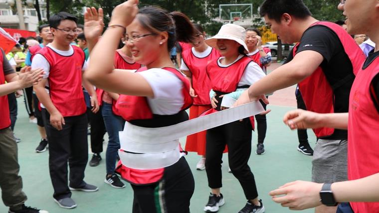 2、比賽方法及規則:兩人為一組隊員,所有隊員穿戴好防護腰帶,將10米長的布條(tiáo)通過轉圈纏在身上,要求在不用手的情況(kuàng)下,將纏繞的布條轉移到下一名隊員身上,直至末位隊員,用時最少隊伍獲勝。