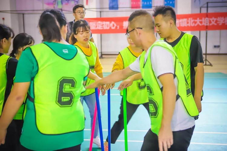 由於教師們在學校的時候沒有那麽多的交集,那麽在項(xiàng)目中我們行遠(yuǎn)培訓師必須先讓(ràng)大家知道他們是一個團隊,因此首(shǒu)先設(shè)計的項目是信任背摔。大家通過培訓師的講解和他們的積極配(pèi)合,很快便(biàn)完成了任務。信任背摔是一項心理素質(zhì)www.17c的活動,目的是通過(guò)這個活動(dòng)建立(lì)團隊內部的信任感,理解信任和承諾的重要性和力(lì)量;學習換位思考,更好的理解他人。