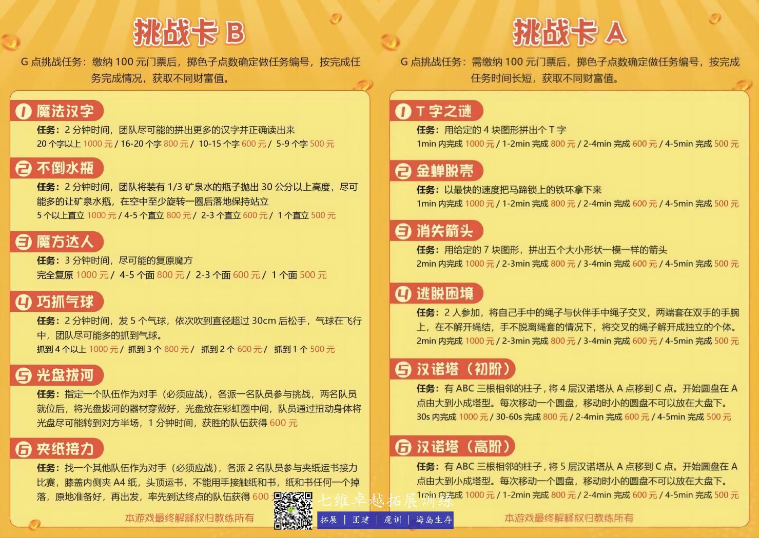 課程簡介(jiè):將團隊成員以5-8人為一組分成若幹個公司,各公司確立自(zì)己的名稱和(hé)每個人的職位。活動地址分為市場區和雷區(qū)。
