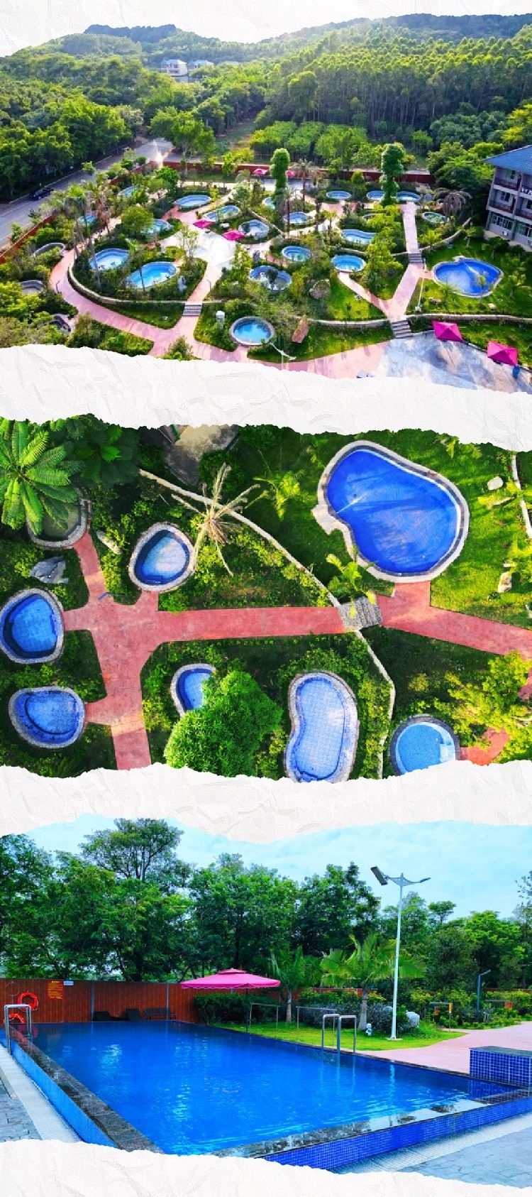 萬裏山影(yǐng)度假村酒店牛仔(zǎi)穀養生泉(quán)占地麵積(jī)6000方,有“石林養生泉”之稱,養生泉區(qū)內數十種稀有樹木,樹木蔥蘢,內設30個特色養生泉池(chí),有各種功效的特色養生(shēng)泉(quán)池,恒溫泳池(chí)全身魚療(liáo)按摩池等。