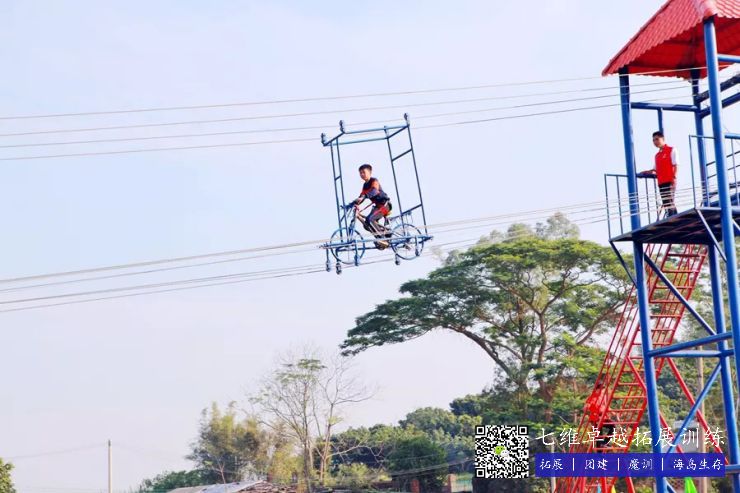 空中單車——十米高台,鋼索橫跨百米水域(yù),人與單車的重(chóng)力在鋼索之(zhī)上利(lì)用自然落差的慣性,以極(jí)快的速度“飛”向對岸,具有一定的挑戰性。