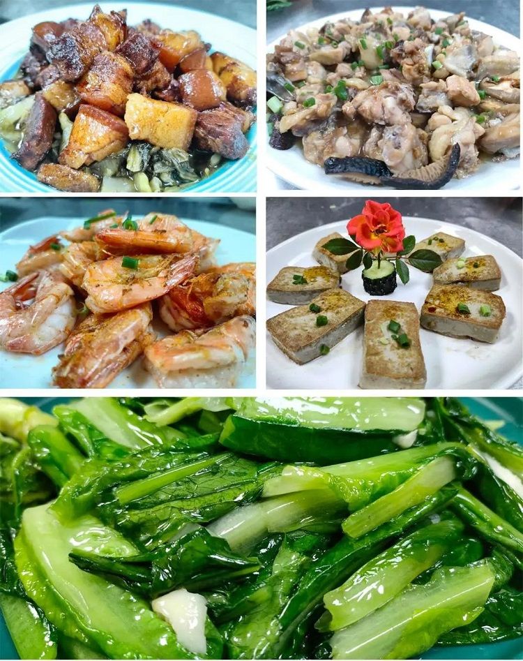 12:00-13:00 午(wǔ)餐(9菜1湯,10人一桌)