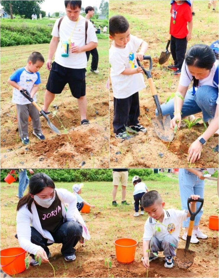 在家長(zhǎng)的陪伴和鼓勵下,孩子們拿起鋤頭和向日葵苗(miáo),瞬間變身為農夫。種苗、培土、澆水,每一道程序,孩子們(men)都在認真地進行著