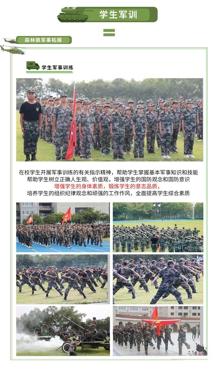東莞市森林狼軍事基(jī)地位於東莞市常(cháng)平鎮。經(jīng)營範圍包括:中小學生社會 實踐、軍訓、軍事夏令營(冬令營)、遊(yóu)學、研學、民兵訓練、企業www.17c、親(qīn)子拓(tuò)展、 安全培訓、反恐培訓(xùn),大型體育(yù)賽事、大型活動的組織和安保服務等。