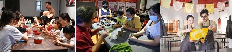 非遺--鎮濠泥雞體驗 、非遺--玉石(shí)花盆景體驗 、 廣綢坊染布(bù)體驗(yàn)