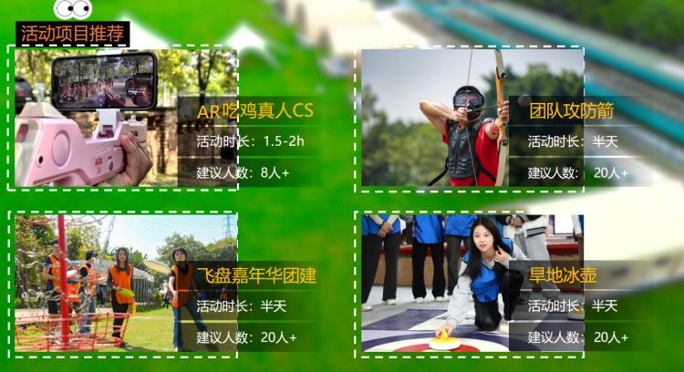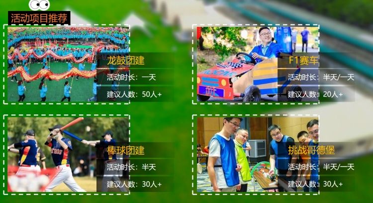 主營業務(wù)豐富多(duō)樣 ,涵蓋團建活動 www.17c培訓  商務會議 、休閑娛樂(lè) 親(qīn)子(zǐ)活動(dòng) 、趣味運動會以及安 全主題活動等多個項目 無論是企業團隊(duì)尋求凝聚力 的提升 ,還是家庭渴望溫(wēn)馨(xīn)的親子時光(guāng)