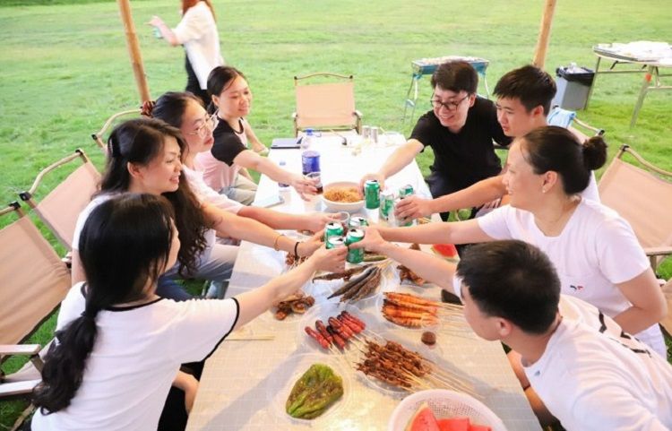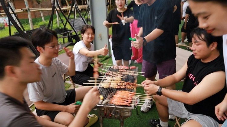營地擁有一千多平(píng)方米的綠(lǜ)茵草地,20餘個遮雨帳篷,可(kě)同時容納600餘(yú)人。即使天(tiān)公不作美,我們也能高效保(bǎo)障,在雨天依舊享受著燒烤的樂(lè)趣,煙霧與雨絲交織,別有一番風味。