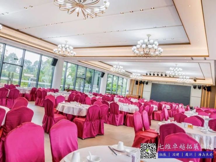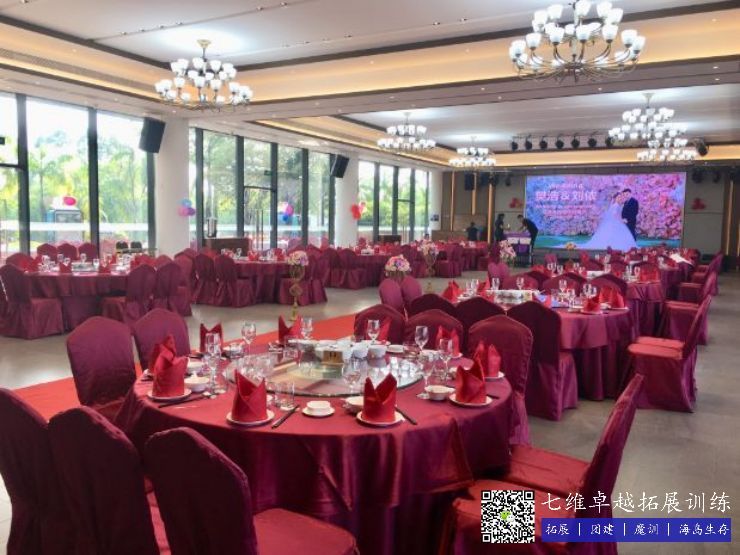 一樓大廳采用四周落地(dì)窗的透光設計,配備有新的音響設備(bèi)、舞台燈光設備以及長達6米的智能LED全彩顯示屏,可供(gòng)婚宴(yàn)、壽宴、周(zhōu)年慶等各種晚宴或活動使用。