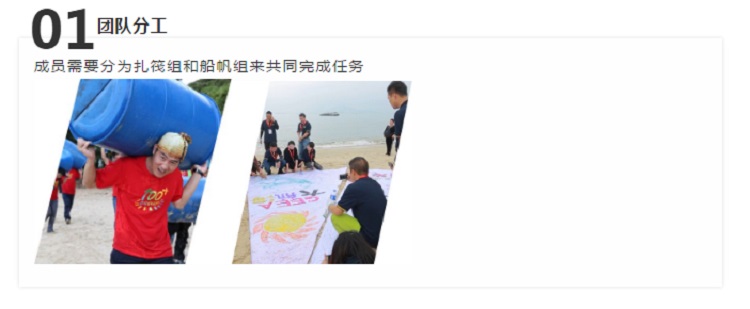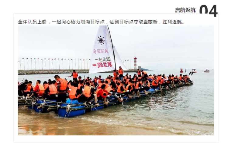 團隊協作DIY巨型艦船(chuán),挑戰體驗水(shuǐ)上航行,尋覓大海寶藏,分工、協作、人和人之間的交流與合(hé)作,團隊凝聚力得到充分提升