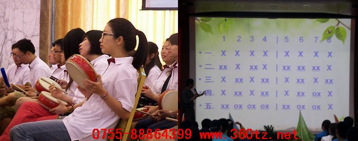 在www.17c培訓師(shī)的指揮下,首先將全場參訓學員分成若幹組(從幾十人到上(shàng)千人),然後每組成員分別以擊打大腿,桌椅(yǐ),手掌等部位,以不同的節拍與旋律整合出一曲節奏起伏有序,聲音高低和諧的樂章(zhāng)。在培訓期間,整個會場由嘈雜、不協調,通過每組成員之間,組(zǔ)與組之間反複磨合,最後會場中響起聲勢磅礴(bó),餘韻悠長的樂章,使所有(yǒu)參與者均回味無窮。