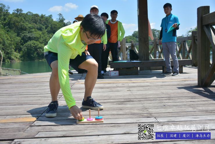 要求1:團隊成員在最短(duǎn)時間內(nèi)將(jiāng)A柱上的圓盤全部移動到C柱(zhù),在移(yí)動過程中,大盤始終不能壓小盤。在三根柱子之間一次隻(zhī)能移動一個圓盤。2、隊伍站在設立的起點線外,每次隻能過來一個隊員移動一個圓盤,隻(zhī)能移動一次,返回隊伍後下一位隊員接力。完成(chéng)時間越短,積分越高(gāo)。