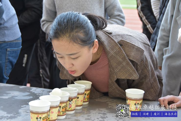 團隊成員派兩個代表將一片餅幹放在額頭,隻能通過臉部動作(zuò)使餅幹滑進嘴裏並吃掉。