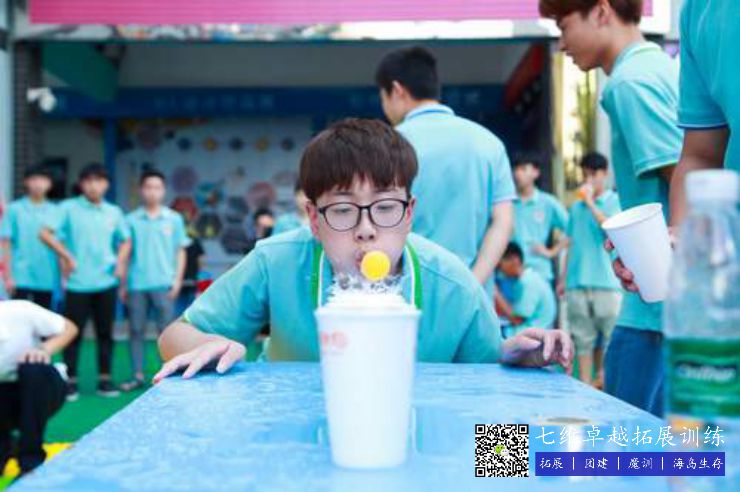 5個紙杯中裝(zhuāng)滿水(shuǐ)挨著放好,氣球放在(zài)第一個杯子上,成員隻能用嘴吹的狀態下,從第一個吹到最(zuì)後一個杯子裏麵。