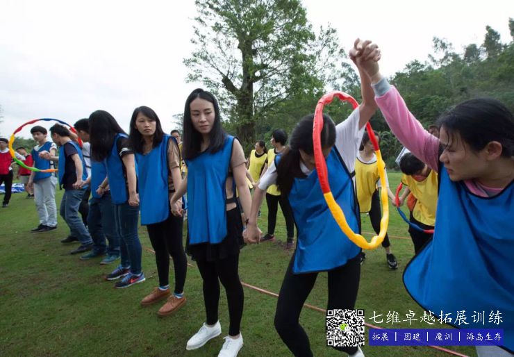 每位隊員手拉手,通過身體將鐵環穿過所有隊員。(遊戲過程中每位隊員保持手拉手)