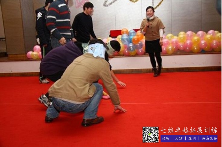 摘要:企業(yè)年會之瞎子穿(chuān)拖鞋遊戲規則是(shì)各(gè)隊輪流派出1人。把(bǎ)拖鞋放在起點前方5步的地方。回到起點蒙眼旋轉三次以後出發,能夠準確前進5步,第6步穿到拖鞋教多的一組(zǔ)獲勝。