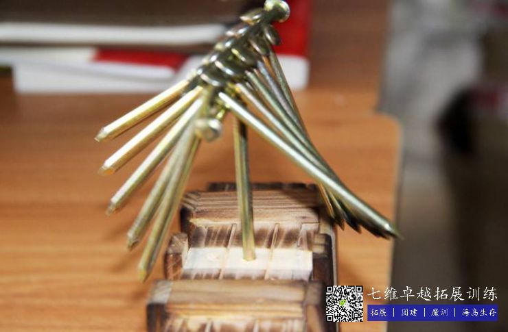 項目簡介:13 個釘子(zǐ),其中一個定在地上(shàng),其餘 12 根(gēn)釘子在不接觸其他物(wù)體的狀態下,放在釘帽上。