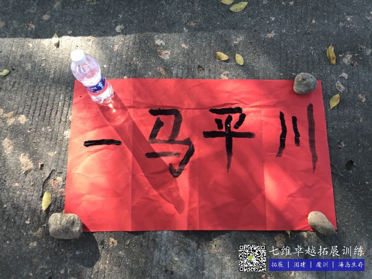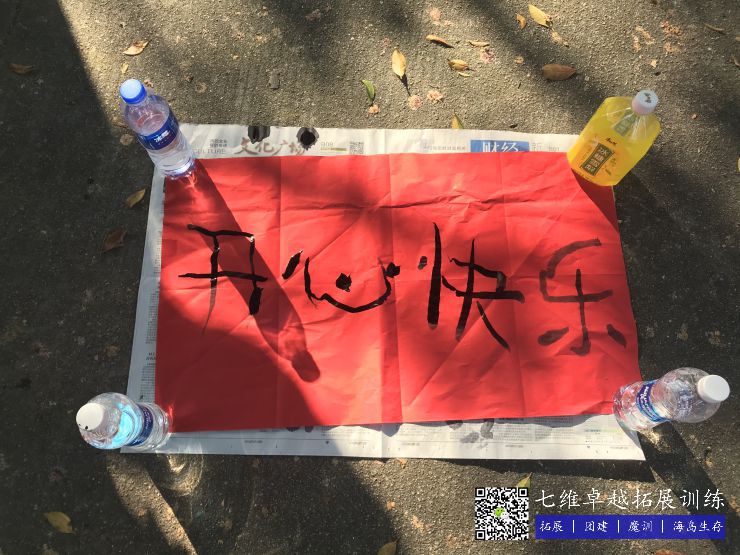 每組齊心協力,寫出了“天天開心”、“開心快(kuài)樂”、“一馬(mǎ)平川”等字