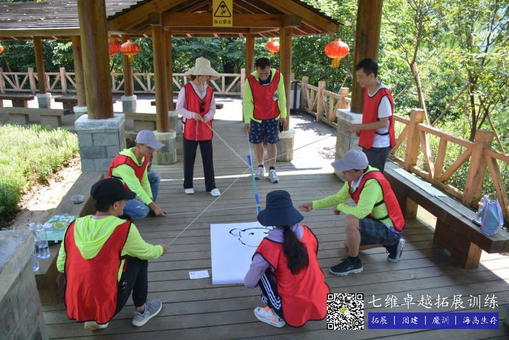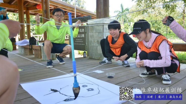 項目簡介:團隊隊員齊心協力,依(yī)靠團隊配(pèi)合(hé),共同使(shǐ)用(yòng)一支特製的道具筆(bǐ),繪製教練所指定的文字或圖案,時間越短,完成效果越好的團(tuán)隊,獲(huò)得的積分越(yuè)高(gāo)。
