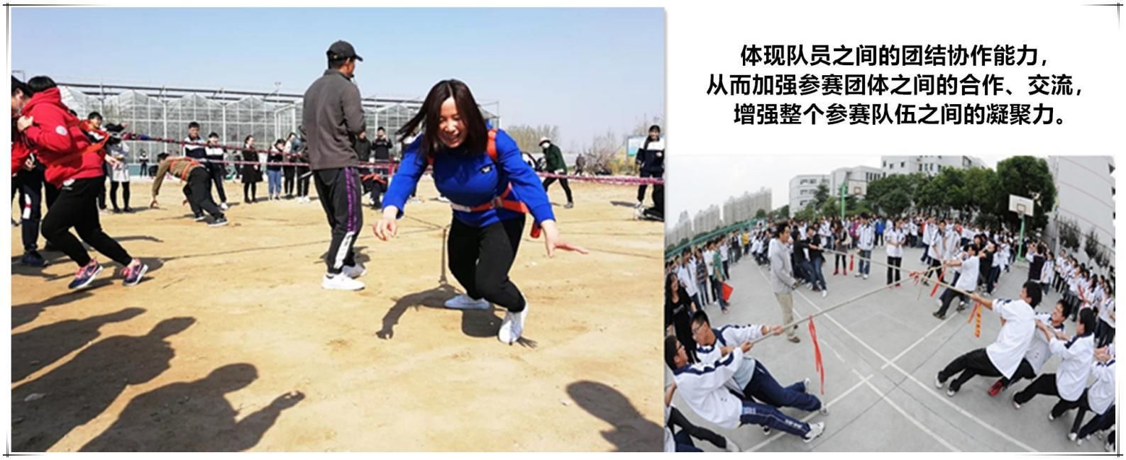 比賽規則:采用(yòng)特(tè)製拔河繩,能(néng)延伸(shēn)為2至4條分支,男女搭配,拔河“不(bú)累”!打(dǎ)造“100”人同時拔河競技的熱(rè)鬧場麵!