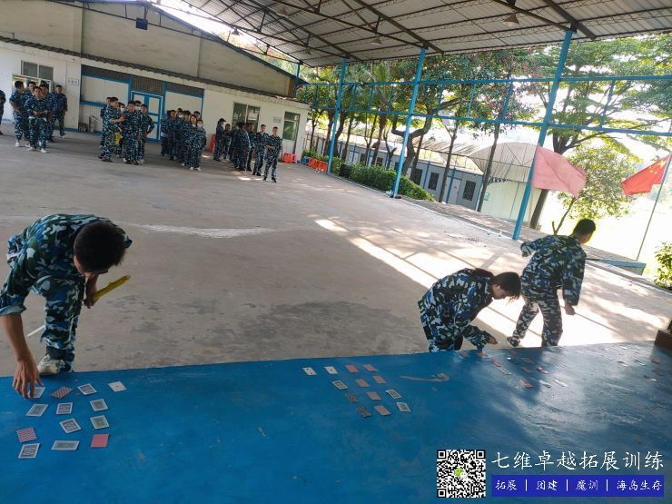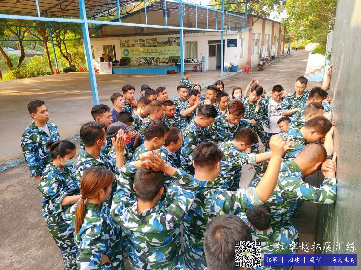 拓(tuò)展訓練現場,分隊,通過小(xiǎo)組內(nèi)的創意隊名、有趣口號、旗幟LOGO等建立團隊(duì)文化,讓團隊成員(yuán)之間快速認識和了解。