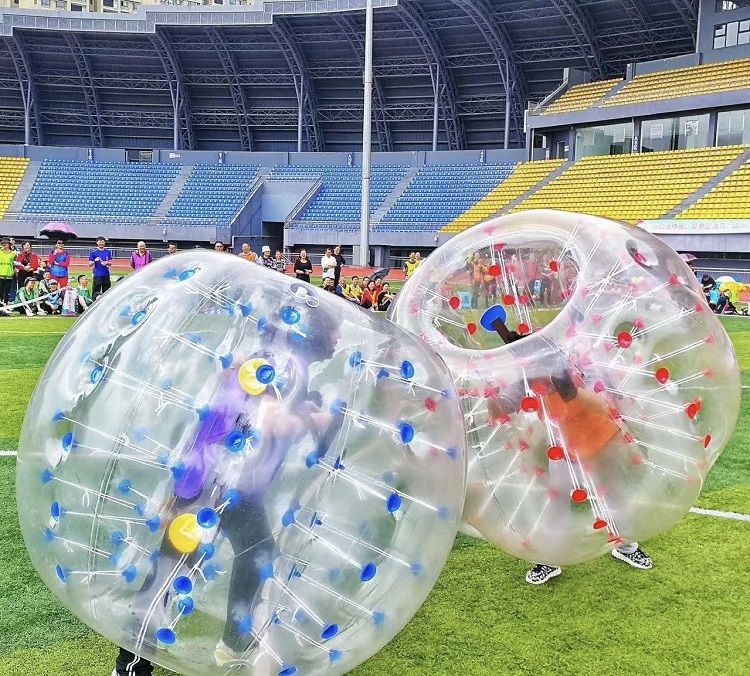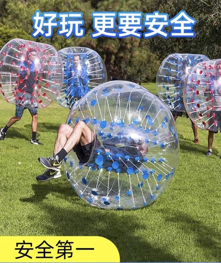 項目說明: 玩法(fǎ)一、在規定的(de)領域內 ,參賽選手進入碰碰球內。比(bǐ)賽開始 ,一個人把另一個碰出規(guī)定的範圍(wéi)內 ,一方(fāng)算勝。玩法(fǎ)二(èr):以足(zú)球賽的方式進行比賽(sài)5人(rén)一隊 ,以進球最多的為贏。