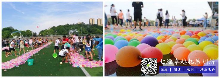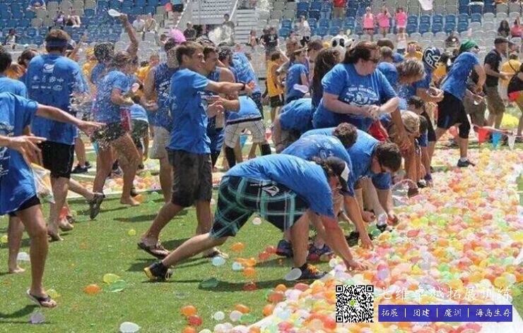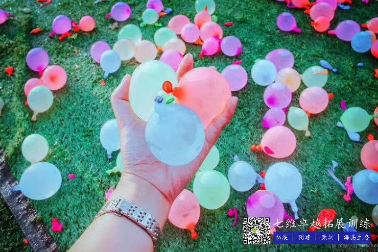 (2)目標:本遊(yóu)戲還可以有多種變換形式,帶來不同的樂趣和挑戰。例如,所有的學員可以圍成一個圓圈,然後將水球拋給對麵的學員。當所有學員同時將水球 拋向空中的時候,漫天水球(qiú),會讓人眼花繚(liáo)亂,驚險刺激。另外,也可以讓所(suǒ)有學員站(zhàn)成兩(liǎng)排,不是將水球拋給對麵(miàn)的學員,而是拋給斜(xié)對麵的學員,甚至中間多隔 幾名學員,會更具有挑戰性。還有,在拋接水球的時候,每一對學員不在拋接一個水球,而是拋接兩個水球。這樣難度就會(huì)更(gèng)大,也會更加的刺激。