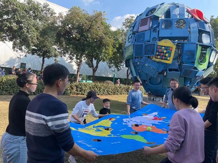 可能我(wǒ)們還(hái)沒踏遍(biàn)全世界(jiè)的每一個(gè)角落,但(dàn)這並不代(dài)表(biǎo)我們不可以讓一個球來代替我們去走遍全世界呀。世界(jiè)球就(jiù)是這麽一個讓我們的夢想(xiǎng)和激情灑遍世界每一個角落的項目。我們大家(jiā)每一個人手拉著世界球地圖的邊緣,全力配合協作整個團(tuán)隊,讓地圖(tú)上的世界球沿(yán)著規則路線到達目(mù)的地,但(dàn)是不能夠讓世(shì)界球落地(dì)哦,這(zhè)樣就挑戰項目成(chéng)功了。快來激發你想走遍全世界的熱情吧!
