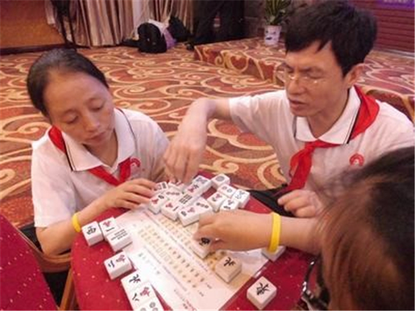 2、將兩幅麻將牌洗開(kāi)並(bìng)大致平均分為10份,學員就座後培訓師給各(gè)組發放;
