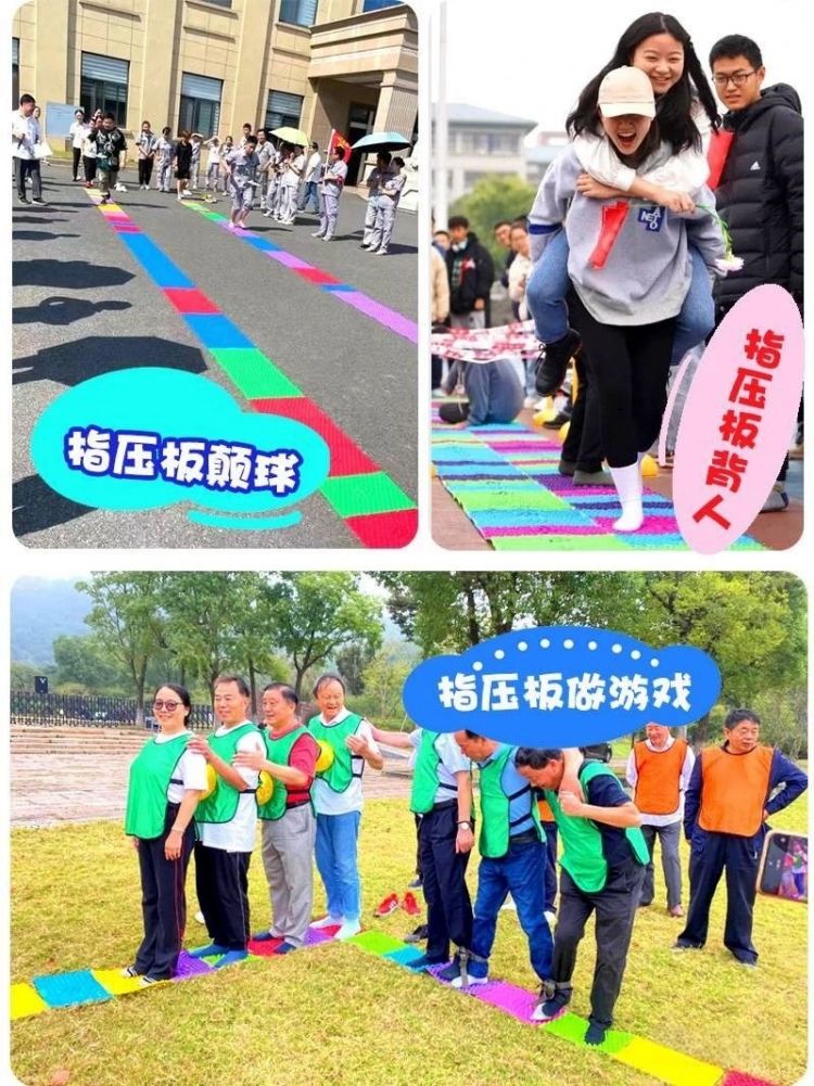 1:指壓板接力跑(pǎo)(規定(dìng)時間內,全組隊員最快通過的獲勝。)